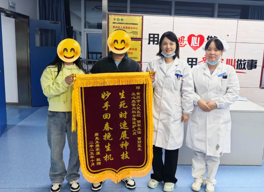 11月5日晚,黄冈市人民医院心内科收到一面锦旗。25天前,一名36岁的急性心肌梗死患者在该院经历了一场惊心动魄的生死救援。经过急诊科、心内科、导管室、麻醉科等多学科团队的紧密协作与全力抢救,最终成功挽救了患者的生命。